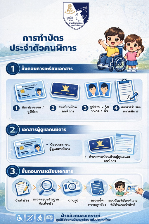 หมายเหตุ กรณีขอดำเนินการทำบัตรฯแทนผู้พิการ จะต้องเตรียม